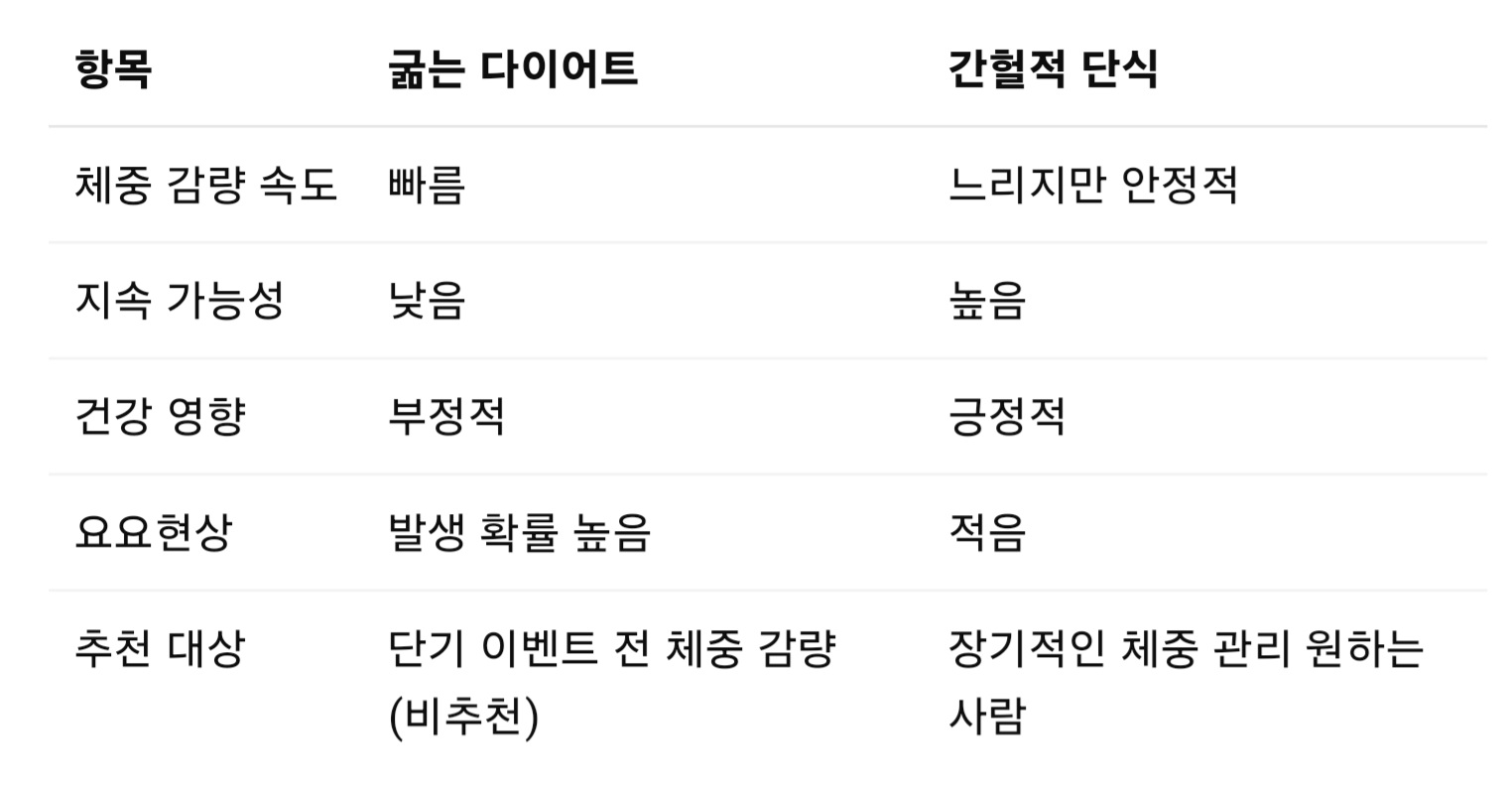 단기간 체중 감량을 원할 때, ‘굶는 다이어트’와 ‘간헐적 단식’ 중 어떤 방법이 더 효과적일까요?