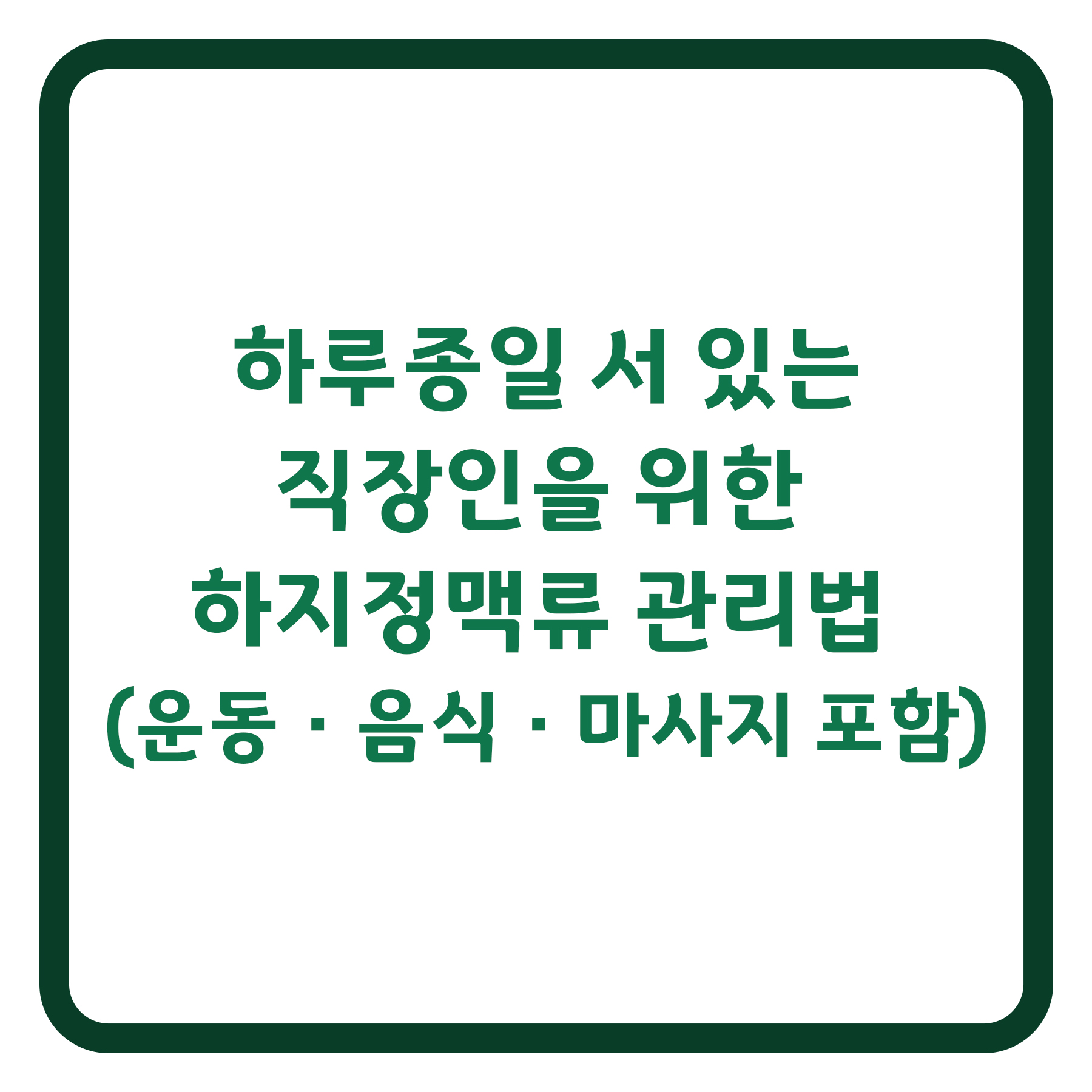 하지정맥류(varicose veins, 하지 정맥 판막 부전으로 인한 정맥 확장)는 하루종일 서 있거나 오래 걷는 직업을 가진 분들에게 특히 부담이 될 수 있는 질환입니다. 아래에서는 하지정맥류의 기본 개념, 시술/수술 방법, 생활요법(자세, 운동, 음식, 마사지 등)까지 정리해 드릴게요. 다만, 이 내용은 참고용이므로 정확한 치료 계획은 혈관 전문의 진료 후 결정하셔야 합니다.